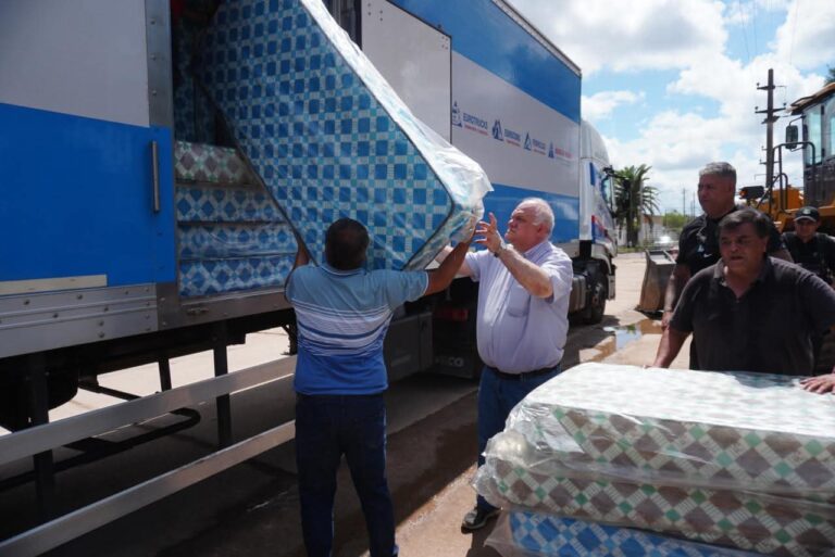 Con recursos propios, el empresario Juan Sáez y vecinos solidarios llevaron agua, artículos de limpieza y maquinaria vial para colaborar con las familias afectadas por el temporal.