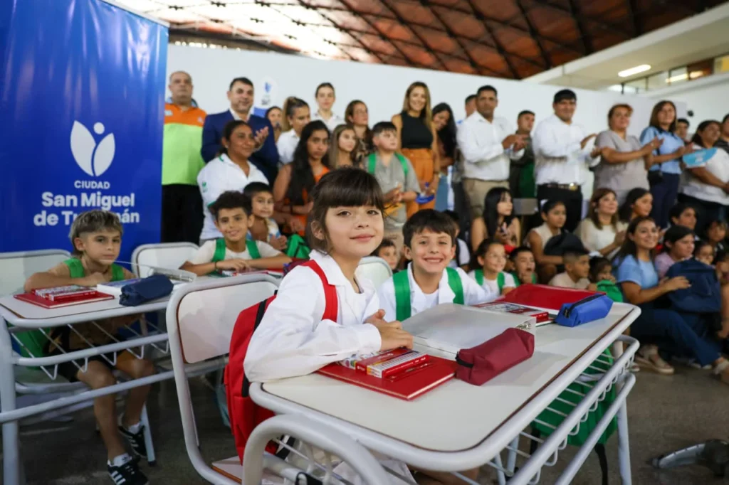 La ceremonia, realizada en el Palacio Municipal, marcó el inicio de un operativo que este año contempla 2.300 kits escolares para alumnos de nivel primario y secundario, junto con pupitres y equipos de aire acondicionado destinados a varias instituciones educativas.