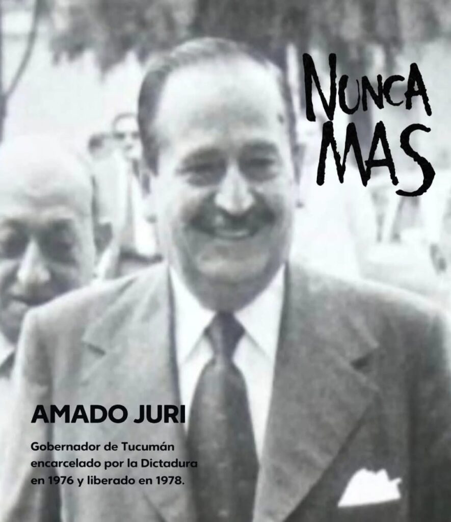 En el marco de un nuevo aniversario del Golpe de Estado en Argentina de 1976, el presidente del Concejo Deliberante de San Miguel de Tucumán, Fernando Juri, compartió un emotivo mensaje en sus redes sociales en el que recordó a su padre, el exgobernador Amado Juri, quien fue encarcelado durante la última dictadura cívico-militar. Acompañado de una imagen histórica y la consigna “Nunca Más”, el dirigente rememoró el impacto personal que dejó aquel período: “Hay fechas que no solo se leen en los libros de historia; se llevan marcadas para toda la vida”, expresó.