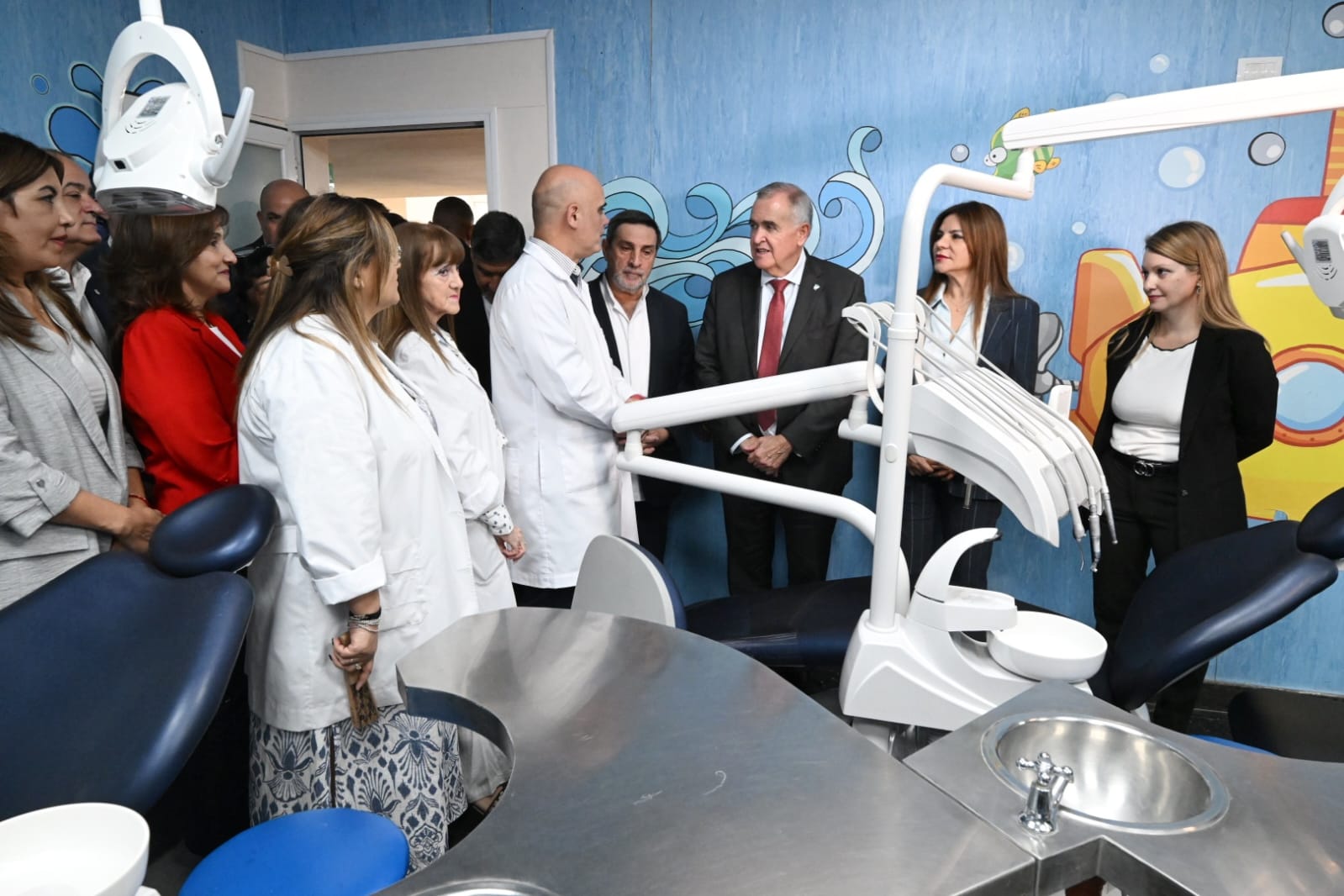 El gobernador Osvaldo Jaldo, encabezó este lunes la inauguración de un tomógrafo odontológico pediátrico y la refacción integral del servicio de Odontología en el Hospital del Niño Jesús, en San Miguel de Tucumán. La obra demandó una inversión aproximada de $130 millones y apunta a mejorar la calidad del sistema público de salud. Durante el acto, el mandatario recorrió las nuevas instalaciones junto a autoridades provinciales, entre ellas el vicegobernador Miguel Acevedo y el ministro de Salud, Luis Medina Ruiz.