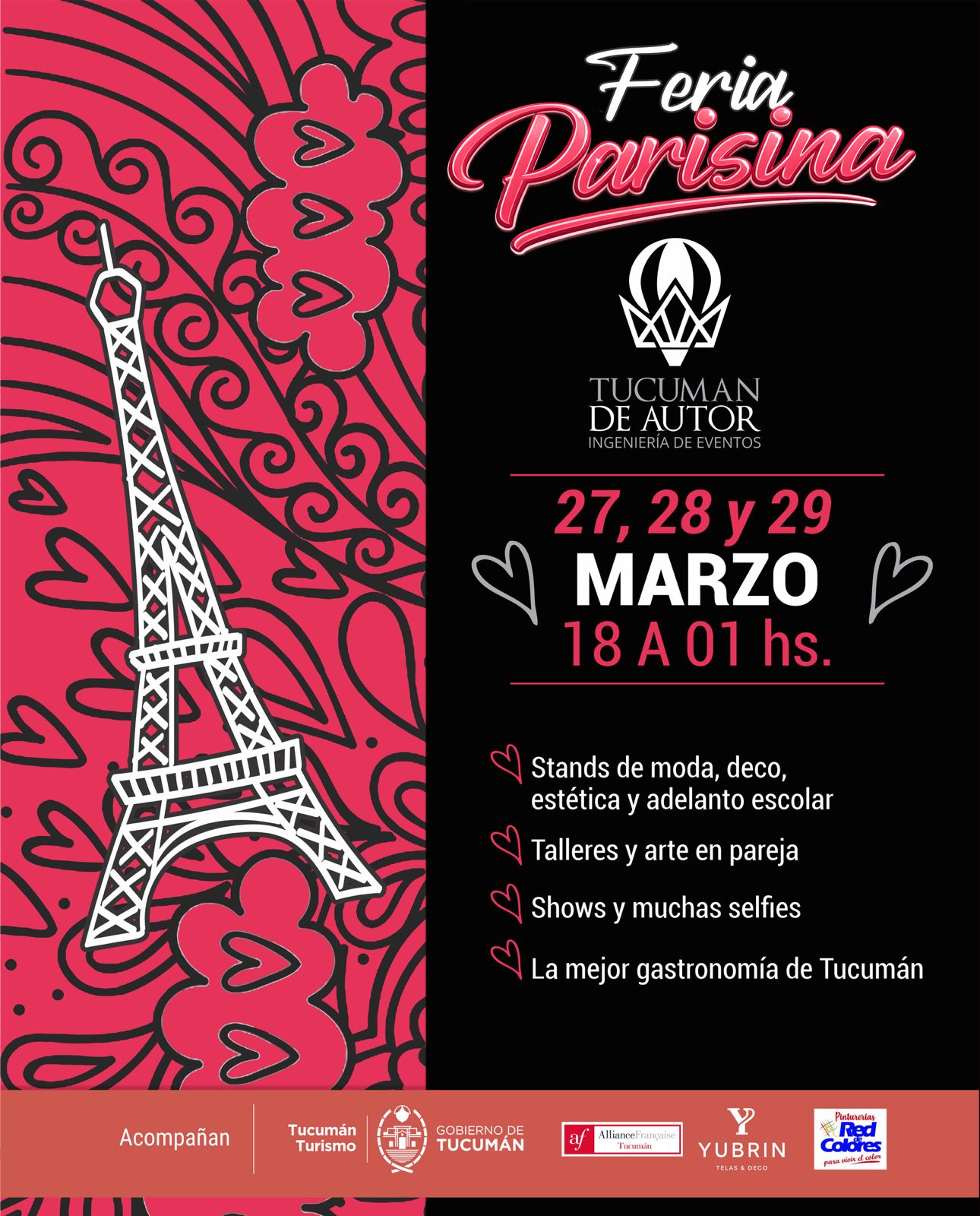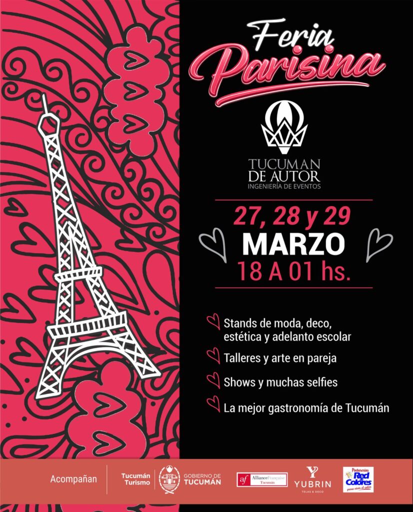 Tucumán disfrutará de la Feria Parisina de Tucumán de Autor, un evento que se desarrollará del 27 al 29 de marzo, de 18 a 1 de la madrugada, en el complejo Alter Point de Yerba Buena (Avenida Perón 2300) y que invita a vivir un fin de semana diferente, conectado con la moda, el diseño y el glamour. Es un espacio que promueve el talento creativo y la producción independiente de la provincia.